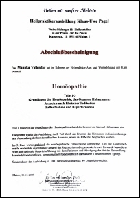 1999 - Weiterbildung: Homöopathie II / Arzneien nach Indikation |