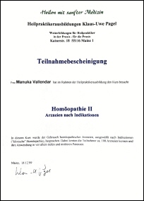 1999 - Weiterbildung: Homöopathie II / Arzneien nach Indikation |